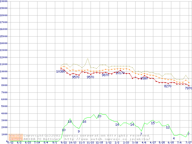 DiamondMax D540X (5400rpm,UltraATA/100,40GB/Platter)の最安値推移
