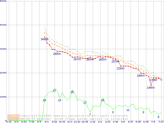 WD Caviar (7200rpm,UltraATA/100,2MB)の最安値推移