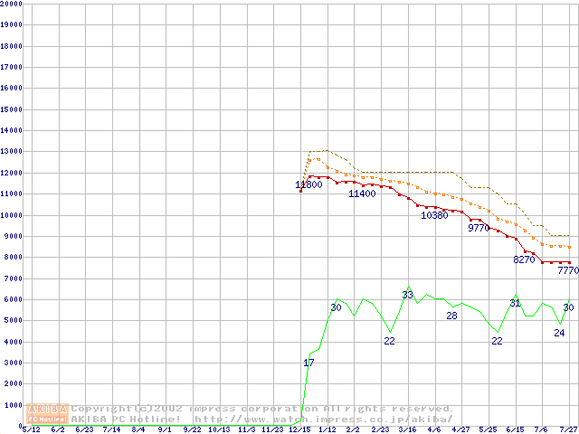 DiamondMax Plus D740X (7200rpm,UltraATA/133,40GB/Platter,流体軸受)の最安値推移