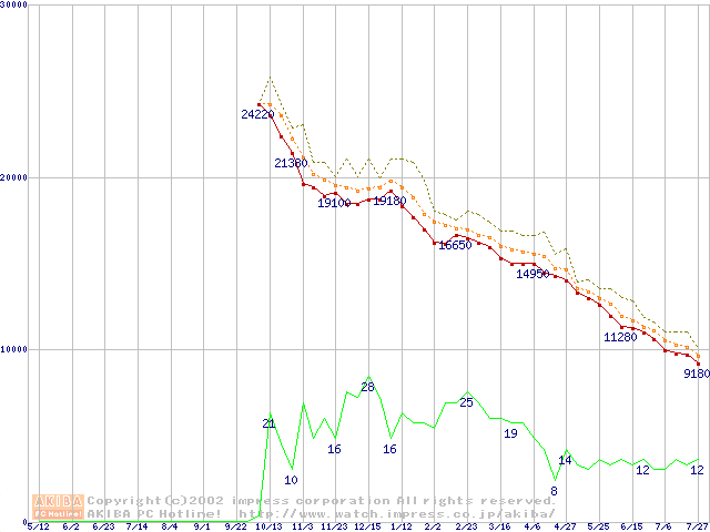 Socket A (OPGA,FSB 266MHz,L2 256KB)の最安値推移