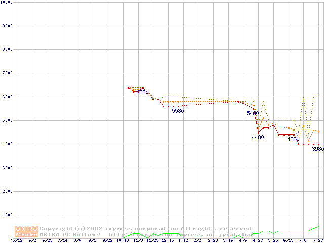 Socket 370 (PGA,FSB 133MHz,L2 64KB)の最安値推移