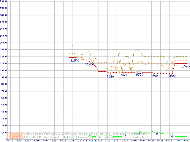 Travelstar 15GN (9.5mm,4200rpm,UltraATA/100,512KB,流体軸受)の最安値推移