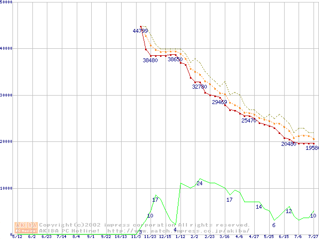 WD Caviar (7200rpm,UltraATA/100,2MB)の最安値推移