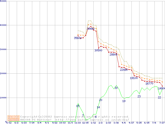 Athlon XP 1900+ (1.6GHz) リテールパッケージの価格推移