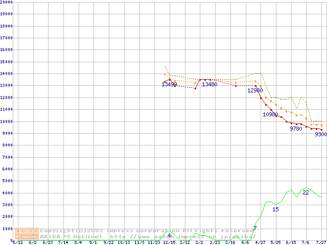 DiamondMax D540X (5400rpm,UltraATA/100,40GB/Platter,流体軸受)の最安値推移