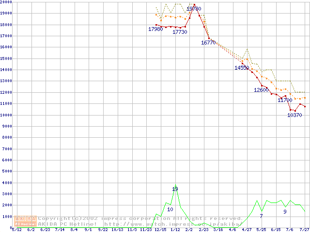DiamondMax D540X (5400rpm,UltraATA/100,40GB/Platter,流体軸受)の最安値推移