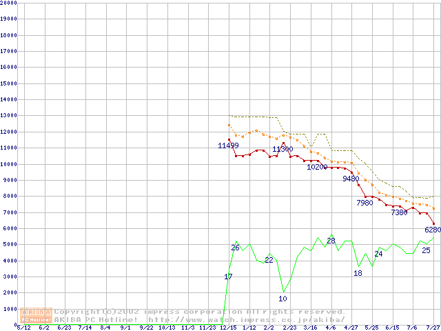Socket A (Morgan,PGA,FSB 200MHz,L2 64KB)の最安値推移