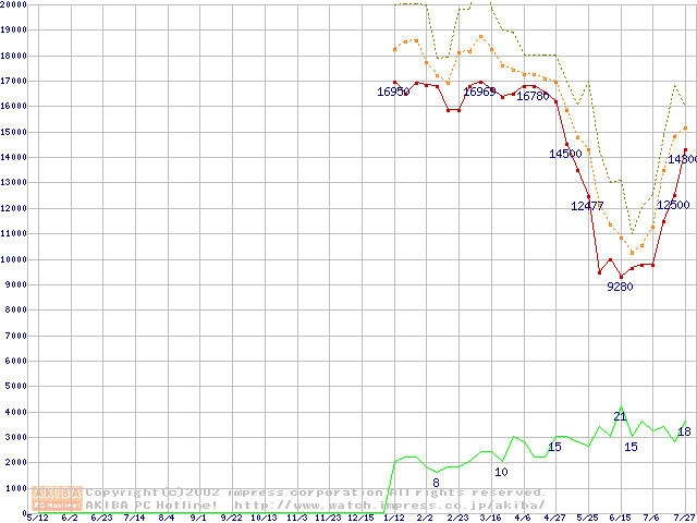 メモリ主要製品の最安値推移
