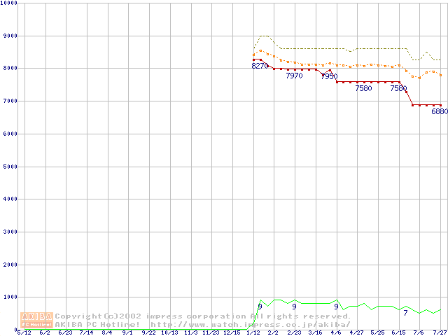 Socket 370 (PGA,FSB 100MHz,L2 64KB)の最安値推移