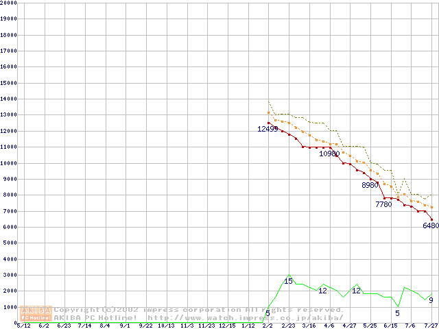 Socket A (Morgan,PGA,FSB 200MHz,L2 64KB)の最安値推移