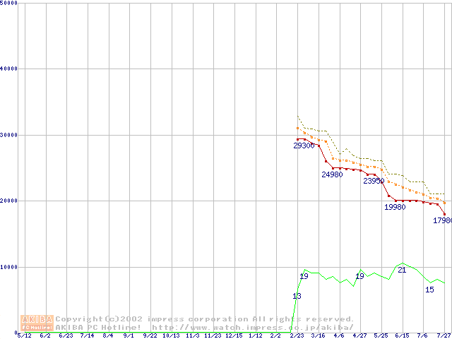 Athlon MP 1800+ (1.53GHz) リテールパッケージの価格推移