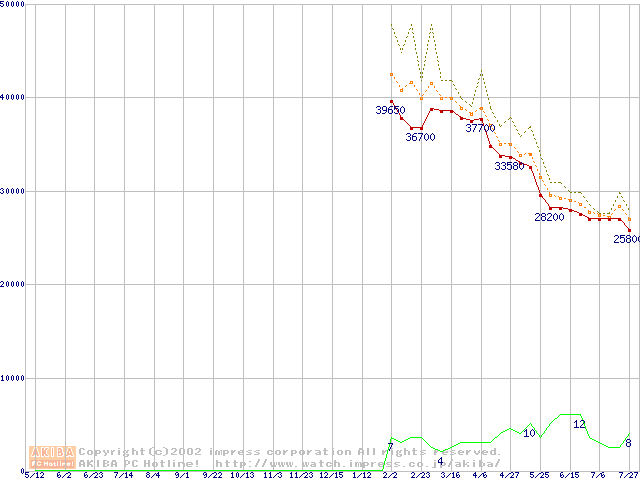 Socket 603 (micro-PGA,L2 512KB,Hyper-Threading,Prestonia)の最安値推移