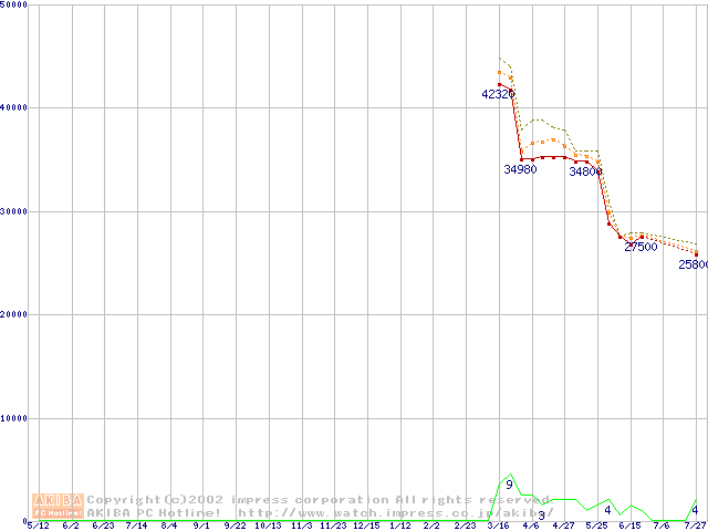 Socket A (Palomino,OPGA,FSB 266MHz,L2 256KB)の最安値推移