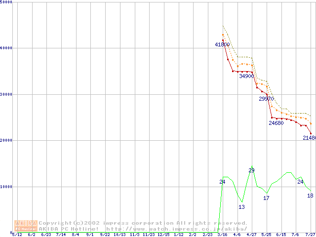 Athlon XP 2100+ (1.73GHz) リテールパッケージの価格推移