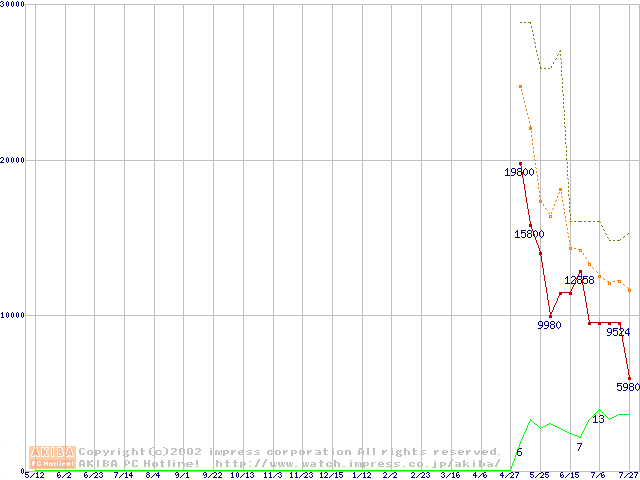 メモリ主要製品の最安値推移