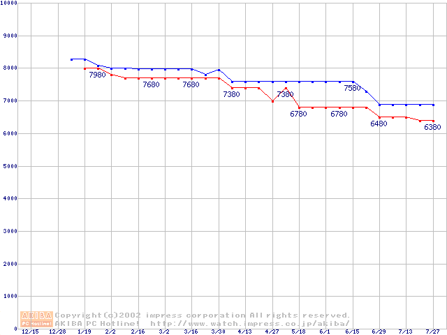 | [↓次グラフ]: | Deskstar 120GXP (7200rpm,UltraATA/100 2MB)の最安値推移 |