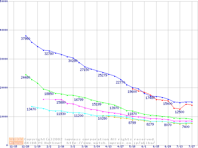 | Deskstar 120GXP (7200rpm,UltraATA/100 2MB)の最安値推移 |