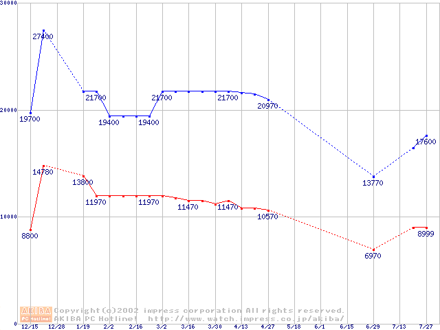 | [↓次グラフ]: | PC2700(DDR333) DDR SDRAM DIMM ECC対応 Registeredタイプの最安値推移 |