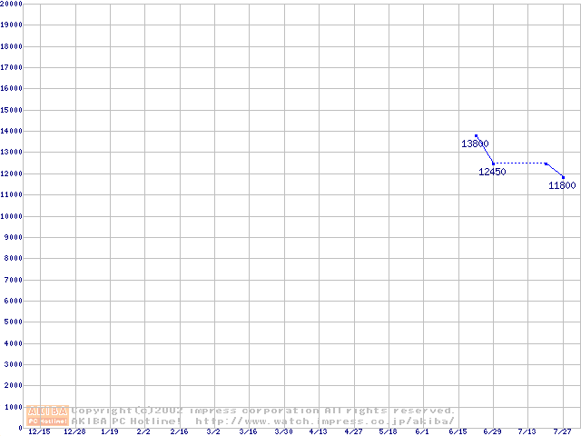| [↑前グラフ]: | PC800-40 DRDRAM RIMMの最安値推移 |