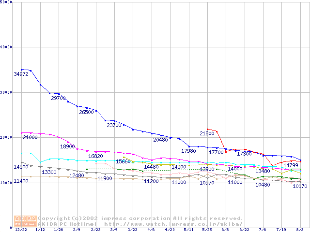 | [↓次グラフ]: | 2.5インチHDD主要製品(最安値1万5千円~2万円未満)の最安値推移 |