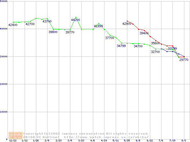 | [↓次グラフ]: | 2.5インチHDD主要製品(最安値3万円以上)の最安値推移 |