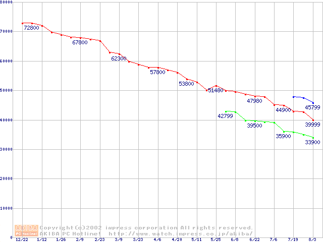 | 2.5インチHDD主要製品(最安値3万円以上)の最安値推移 |