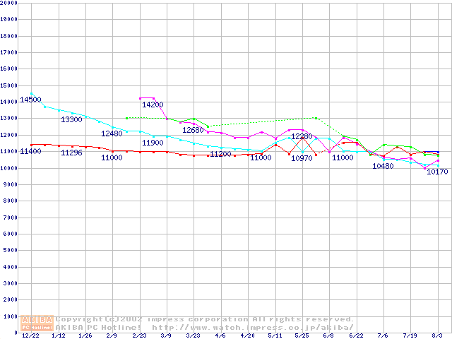 | [↑前グラフ]: | 2.5インチHDD 10GB~20GB未満(9.5mm厚)の最安値推移 |
