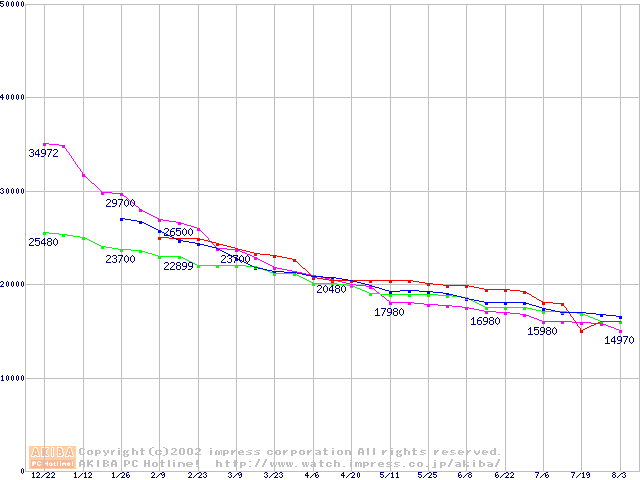 | [↑前グラフ]: | 2.5インチHDD 30GB~40GB未満(9.5mm厚)の最安値推移 |