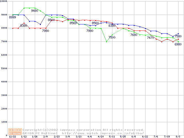 HDD 30GB~40GB未満(5400rpmクラス)の最安値推移