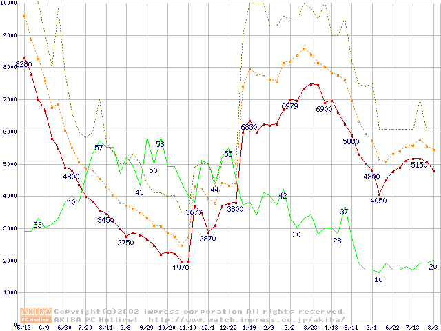 メモリ主要製品の最安値推移
