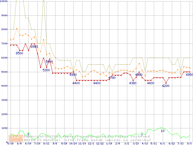 Socket 370 (PPGA,FSB 66MHz,L2 128KB)の最安値推移