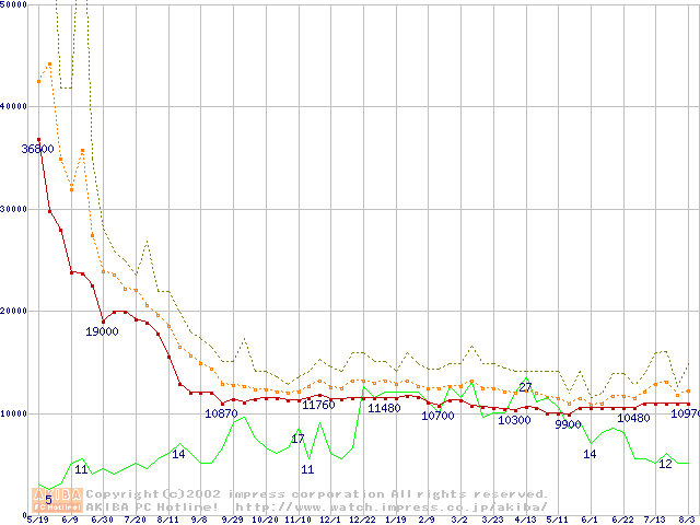 PC800-45 DRDRAM RIMM ECC対応の最安値推移
