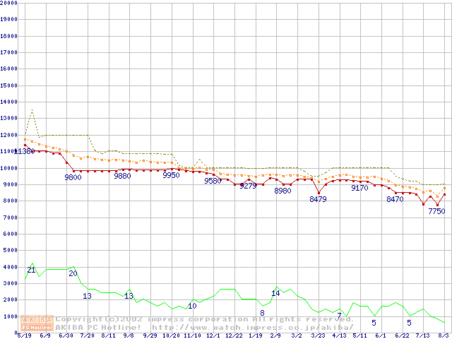 WD Caviar (7200rpm,UltraATA/100,20GB/Platter)の最安値推移