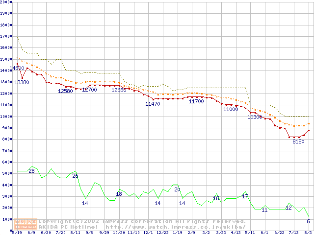 WD Caviar (7200rpm,UltraATA/100,20GB/Platter)の最安値推移