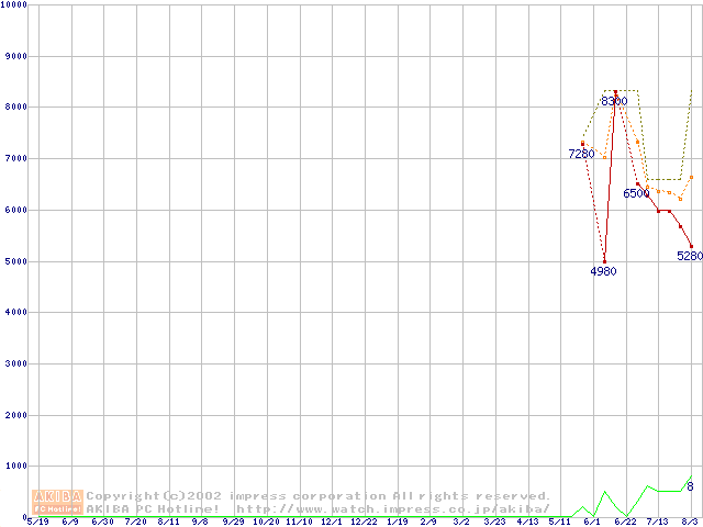 Socket 370 (FC-PGA,FSB 100MHz,L2 128KB)の最安値推移
