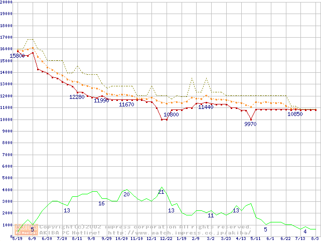 MPG3xxxAH-E (7200rpm,UltraATA/100)の最安値推移