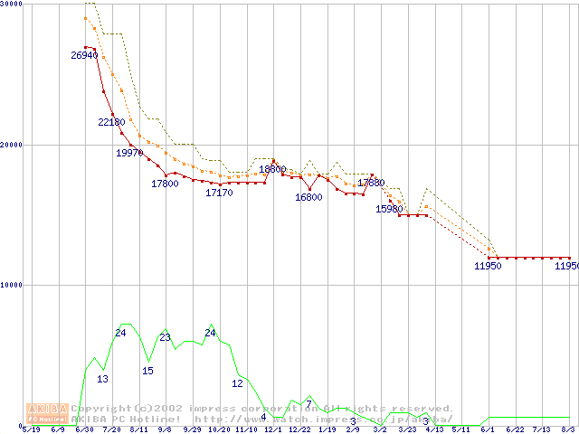 DiamondMax D540X (5400rpm,UltraATA/100,40GB/Platter)の最安値推移