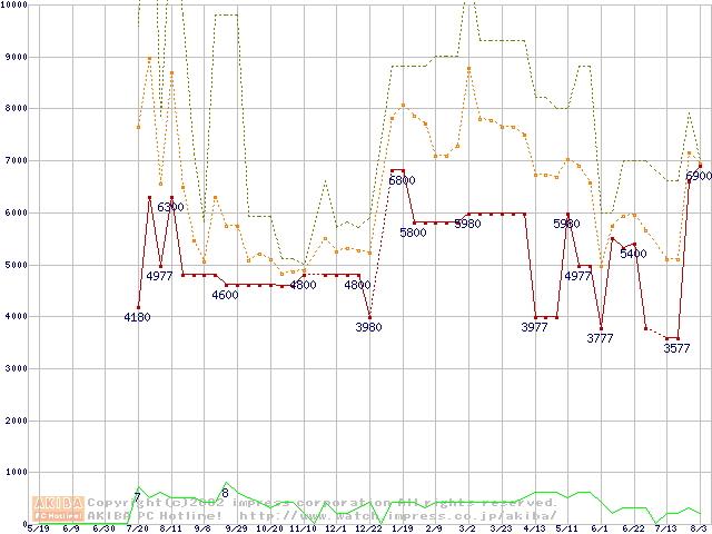PC133 SDRAM DIMM CasLatency=3 ECC対応 Registeredタイプの最安値推移