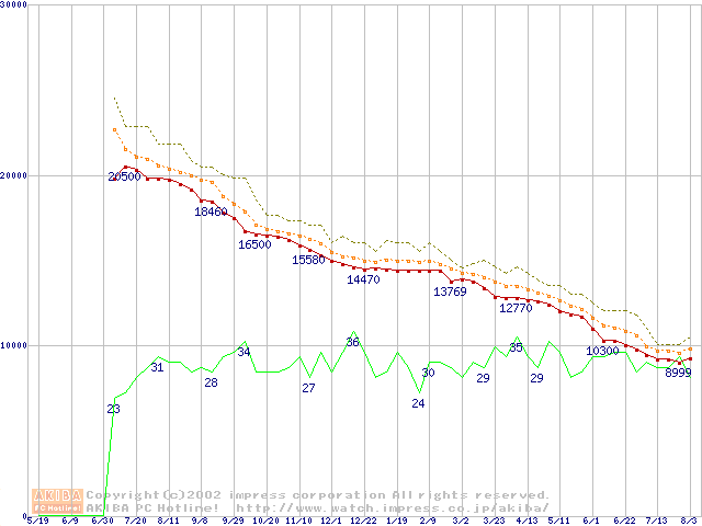 Barracuda ATA IV (7200rpm,UltraATA/100,2MB,40GB/Platter,流体軸受)の最安値推移