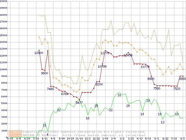 メモリ主要製品(最安値5千円~1万円未満)の最安値推移