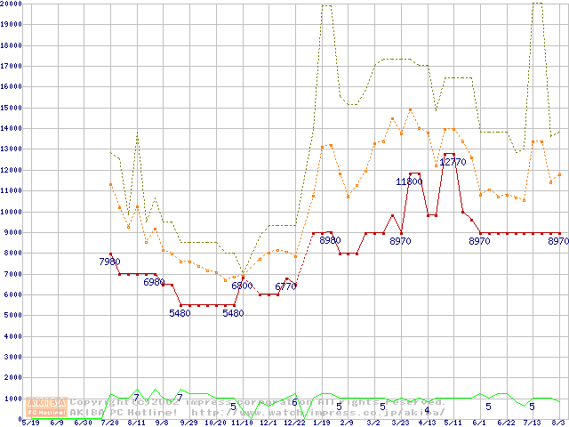 PC100 SDRAM DIMM CasLatency=2 ECC対応 Registeredタイプの最安値推移