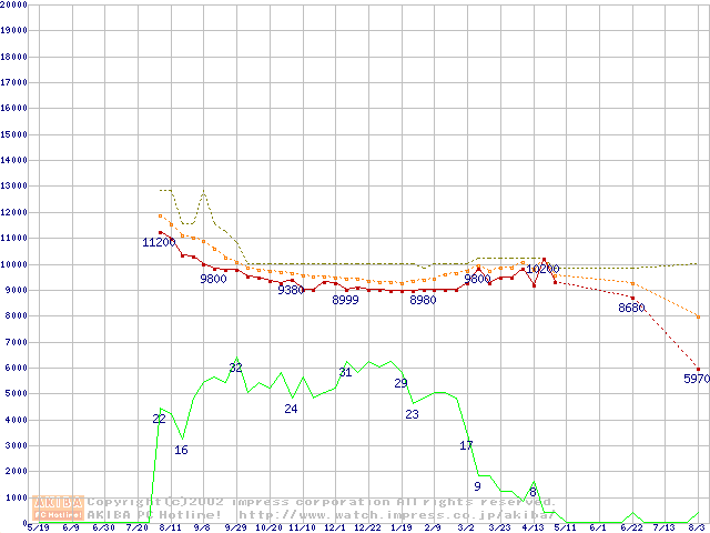 Barracuda ATA IV (7200rpm,UltraATA/100,2MB,40GB/Platter,流体軸受)の最安値推移