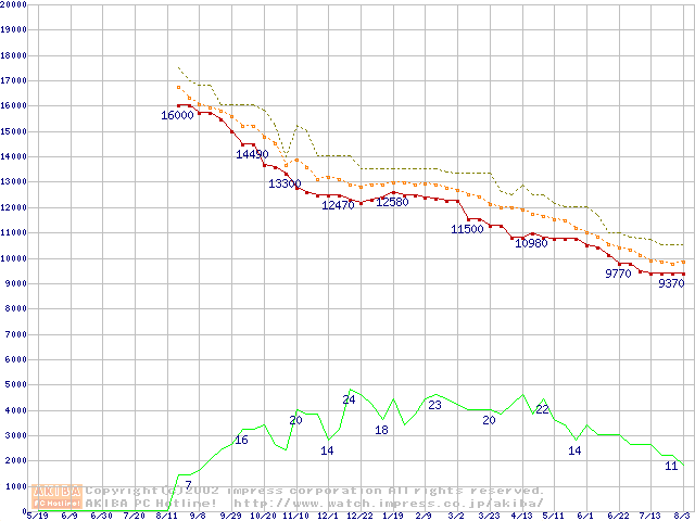 DiamondMax D540X (5400rpm,UltraATA/100,40GB/Platter)の最安値推移
