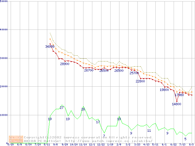 WD Caviar (7200rpm,UltraATA/100,2MB)の最安値推移