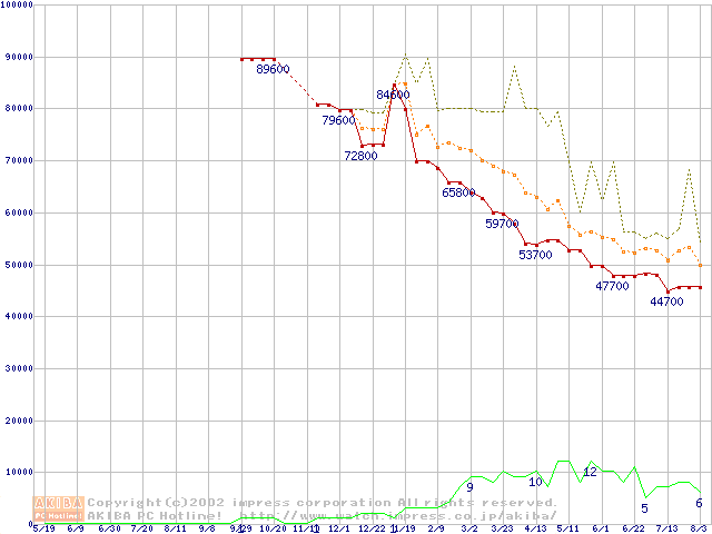 PC2100(DDR266) DDR SDRAM DIMM ECC対応 Registeredタイプの最安値推移