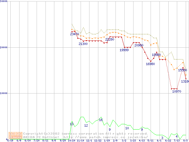 Athlon MP 1500+ (1.33GHz) バルクの価格推移