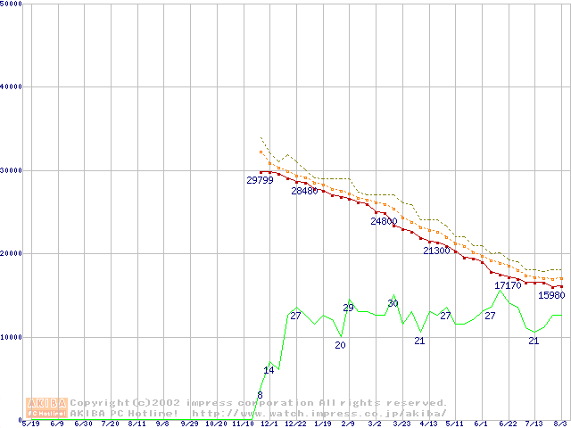 DiamondMax D540X (5400rpm,UltraATA/133,40GB/Platter)の最安値推移