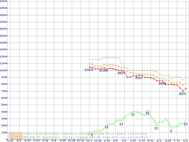 WD Caviar (5400rpm,UltraATA/100)の最安値推移