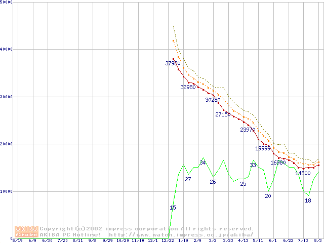Deskstar 120GXP (7200rpm,UltraATA/100 2MB)の最安値推移