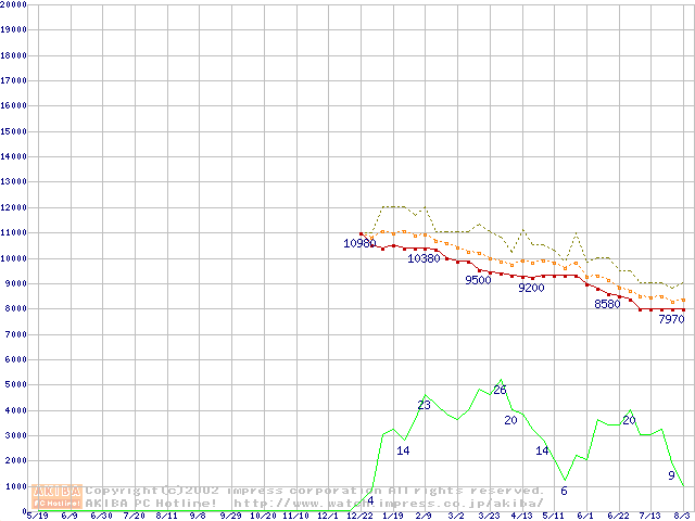DiamondMax D540X (5400rpm,UltraATA/100,40GB/Platter,流体軸受)の最安値推移